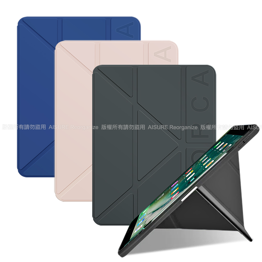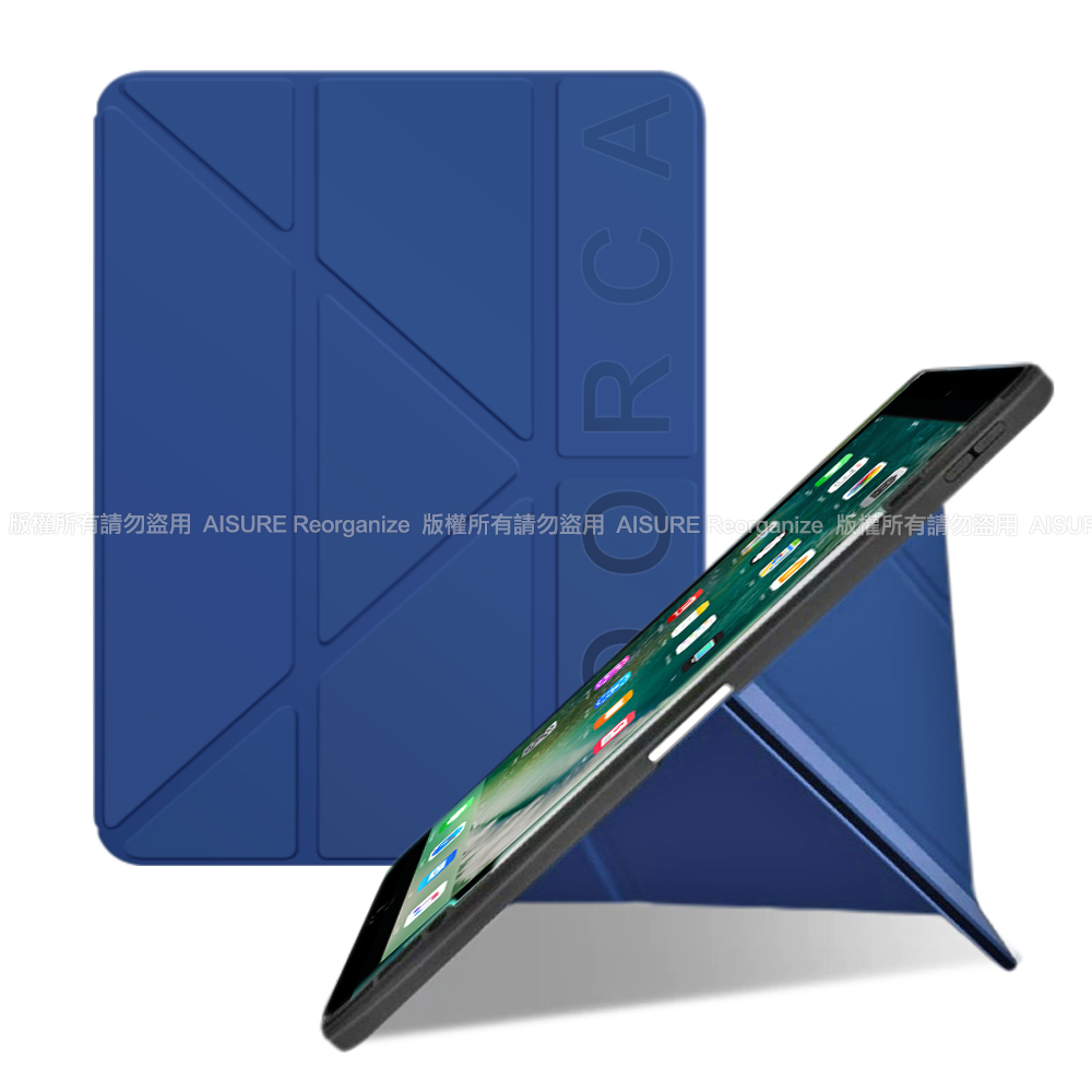 VOORCA iPad 5/6/7/8/9 9.7吋 時尚都會 Y折磁吸帶筆槽薄型保護套-深藍
