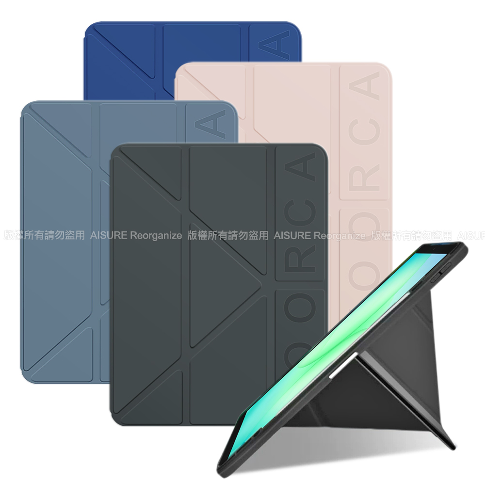 VOORCA 三星 Galaxy Tab A11+ / A9+ 時尚都會 Y折磁吸帶筆槽薄型保護套-黑