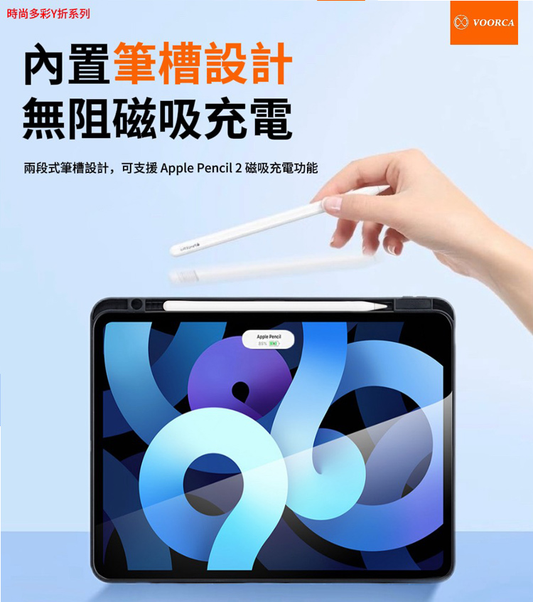 VOORCA iPad Pro 11 (2018/2020/2022) 時尚都會 Y折磁吸帶筆槽薄型保護套-深藍