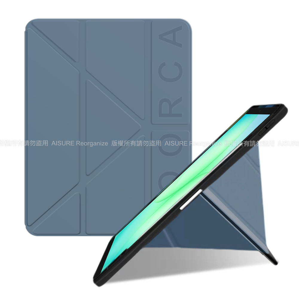 VOORCA 三星 Galaxy Tab A11 / A9 時尚都會 Y折磁吸帶筆槽薄型保護套-莫藍