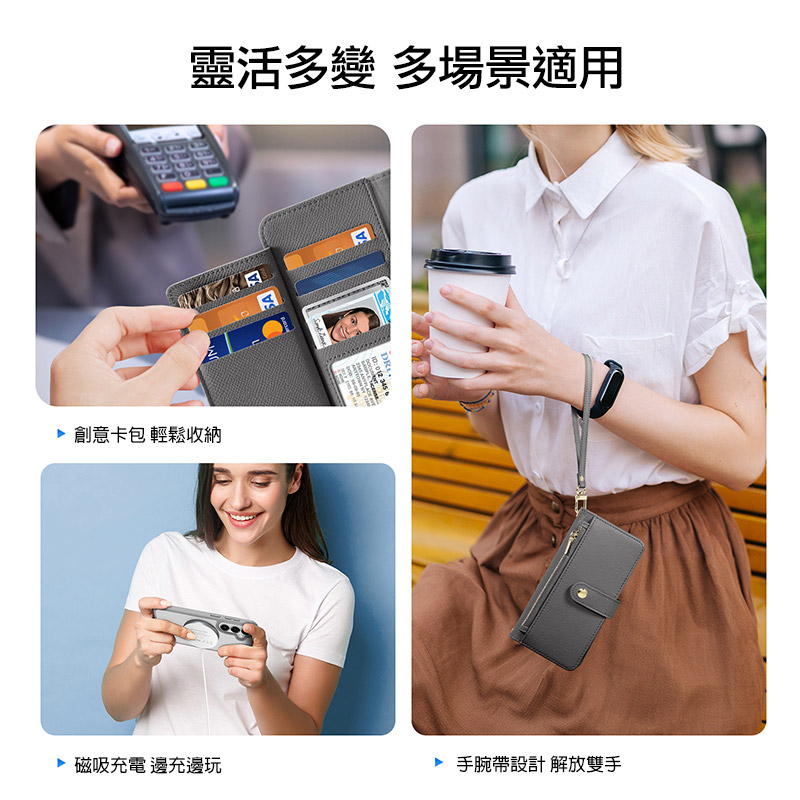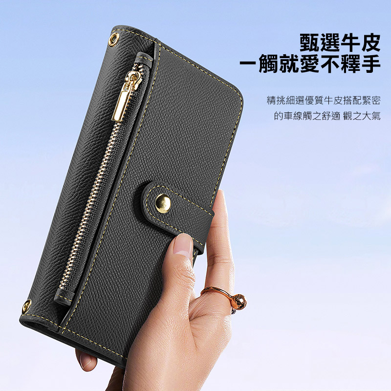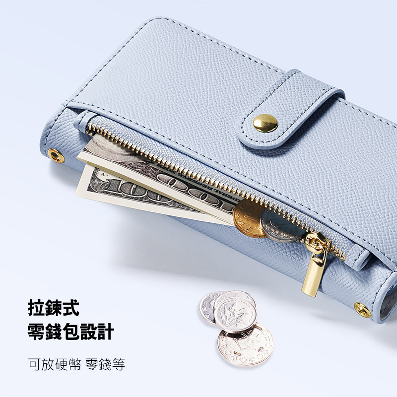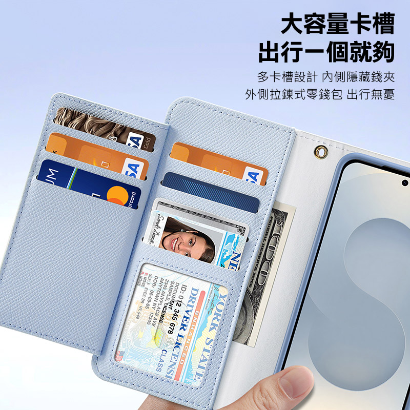 .錢包式側翻皮套,大容量卡槽,拉鍊式零錢包,出行無憂