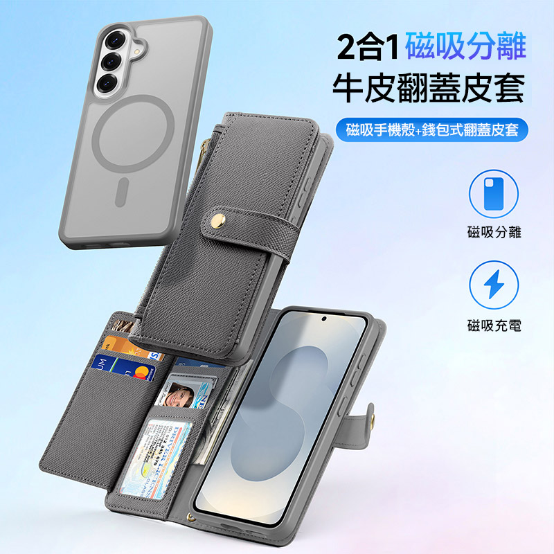 .二合一磁吸分離,磁吸手機殼+錢包式側翻皮套