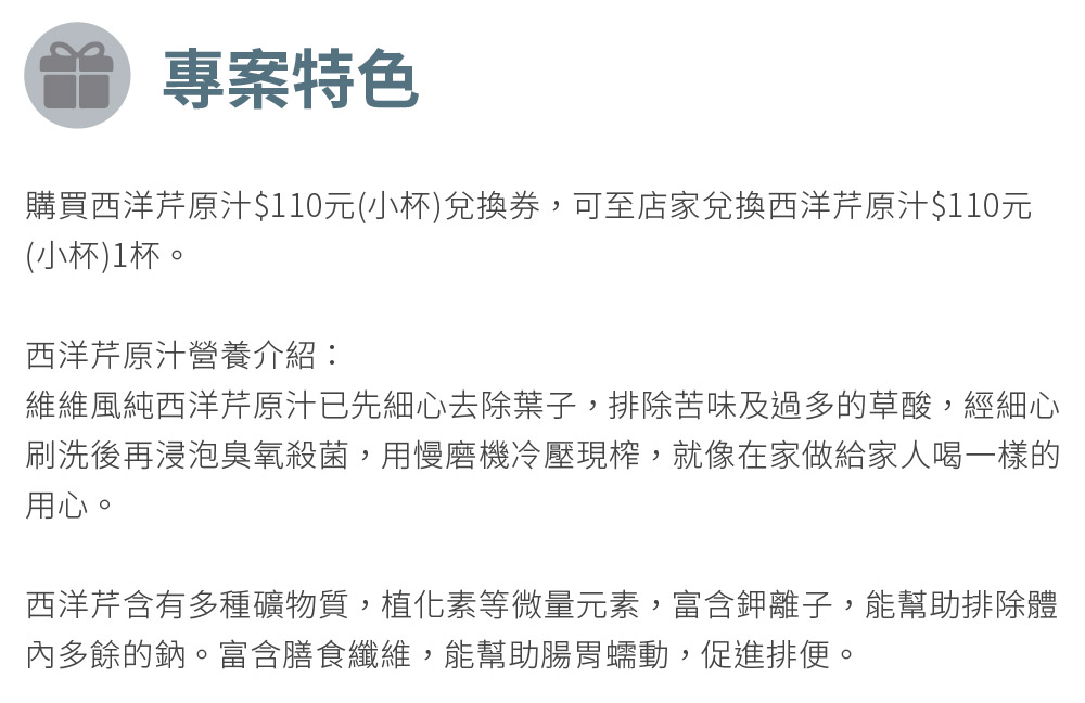 台北信義區【維維風果汁舖】西洋芹原汁$110元(小杯)兌換券(MO)