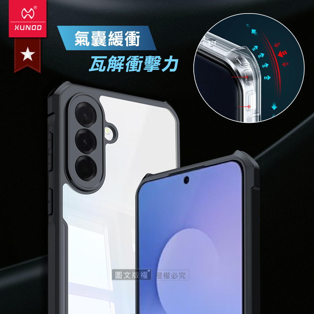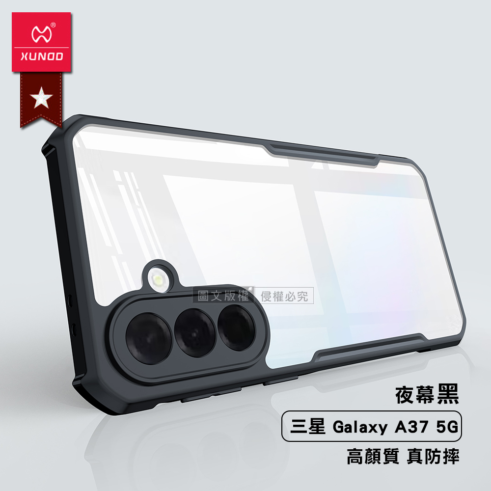 XUNDD訊迪 軍事防摔 三星 Galaxy A37 5G 鏡頭全包覆 清透保護殼 手機殼(夜幕黑)