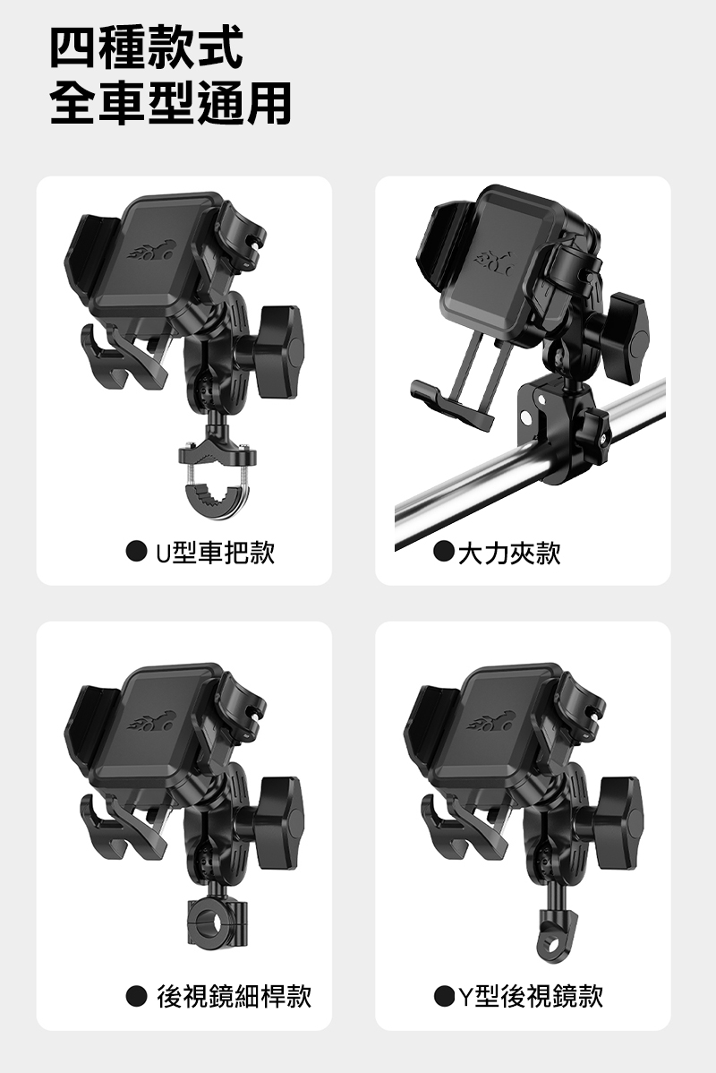 迷你機車減震快扣手機支架(Y型後視鏡款)