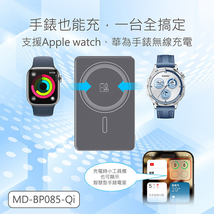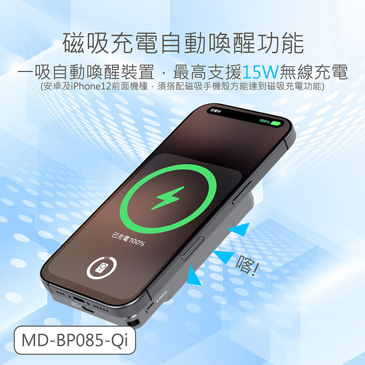 (安卓及iPhone12前面機種,須搭配磁吸手機殼方能達到磁吸充電功能)