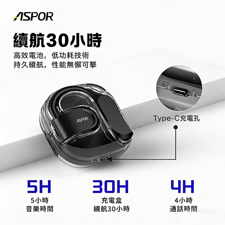 ASPOR A627 開放式耳掛藍牙耳機-雪白
