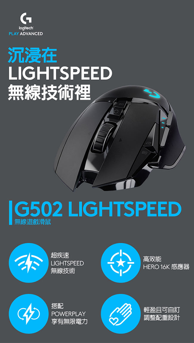 羅技 Logitech G502 LIGHTSPEED 高效能無線電競滑鼠