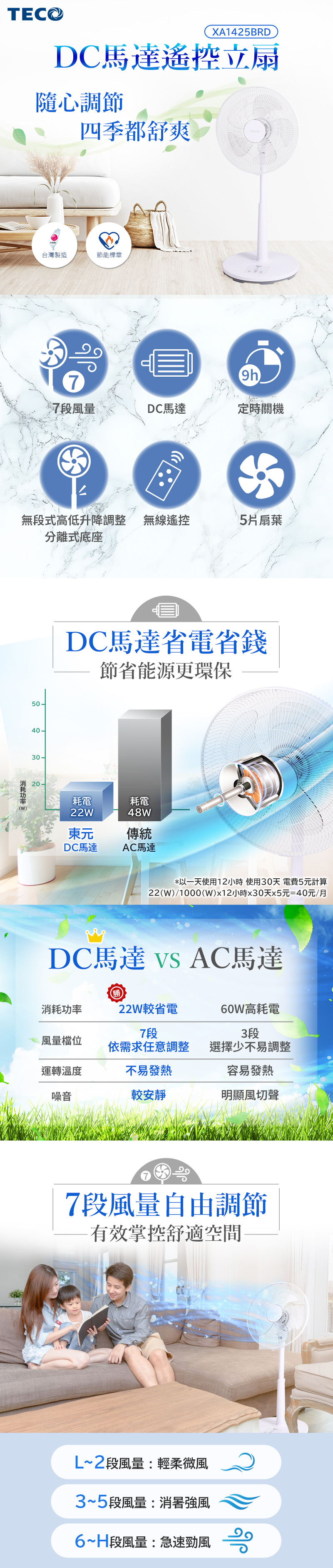 ◆DC馬達源自東元60年工藝技術,有效省電。