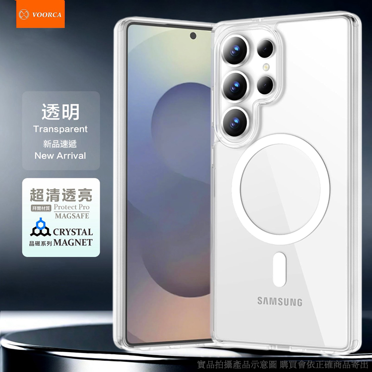 VOORCA 三星 Galaxy S25 Ultra 晶磁不變黃PC2.5防摔殼-附相機電子拍照鍵-透明
