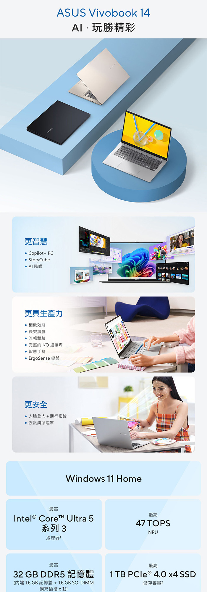 《ASUS 華碩》 X1407AA-0041D325(14吋WUXGA/Ultra 5 325/16G+32G/2TB SSD/Win11/特仕版)