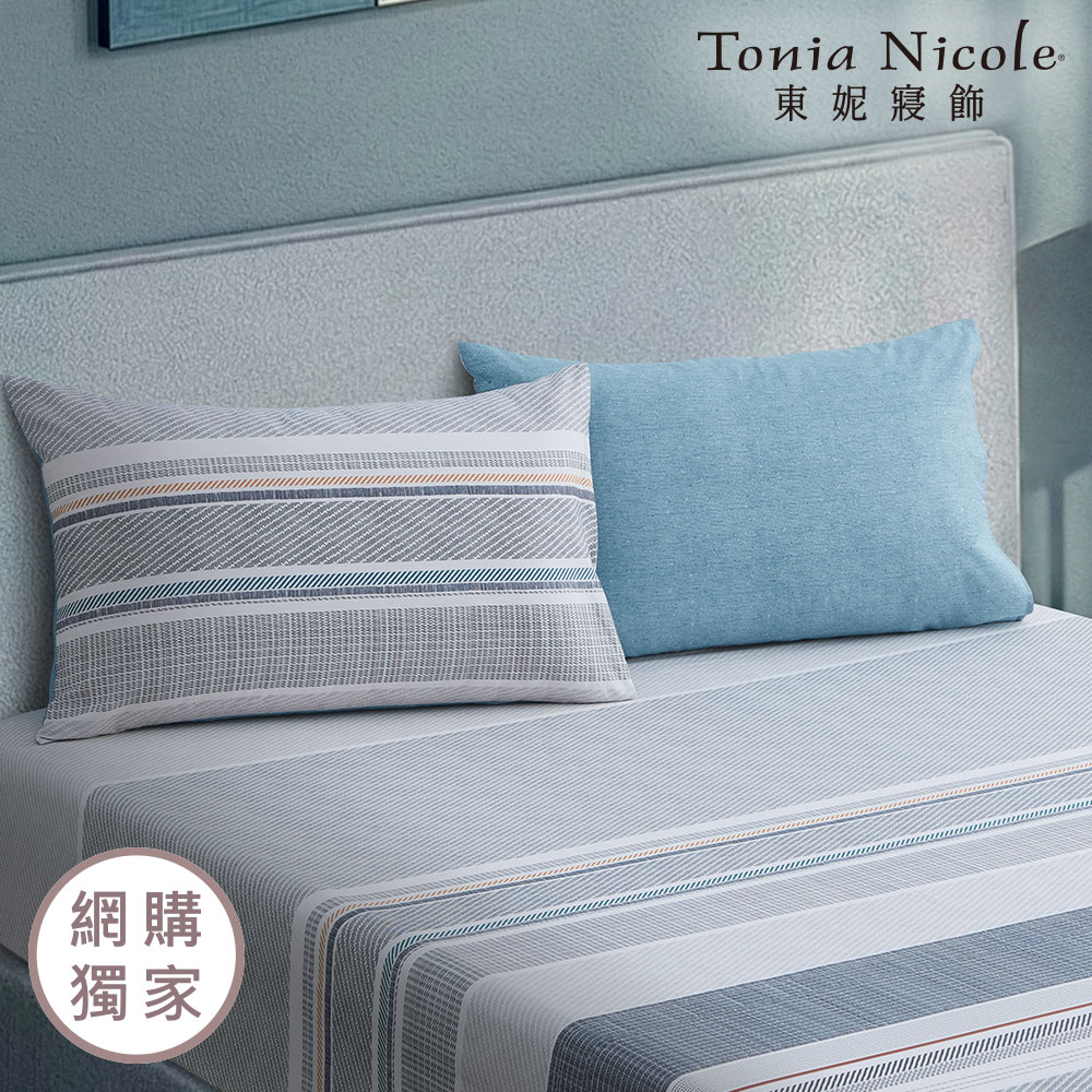 【Tonia Nicole 東妮寢飾】靜謐藍圖100%精梳棉床包枕套組(加大)