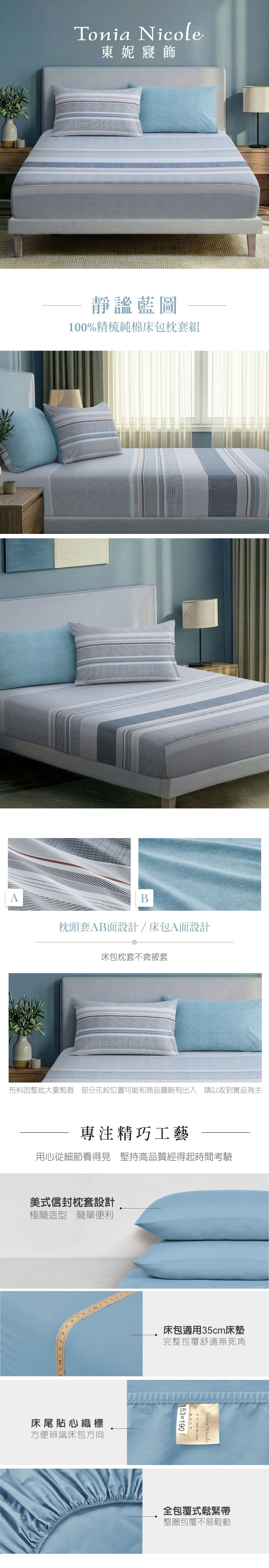 【Tonia Nicole 東妮寢飾】靜謐藍圖100%精梳棉床包枕套組(雙人)