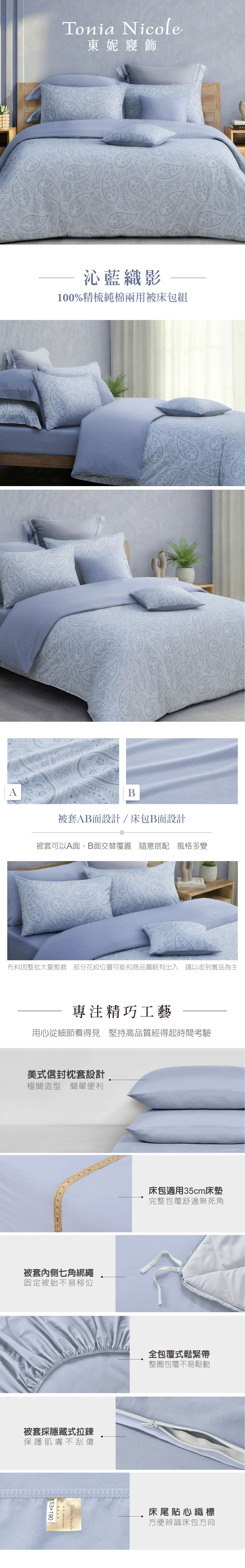 【Tonia Nicole 東妮寢飾】沁藍織影100%精梳棉兩用被床包組(雙人)