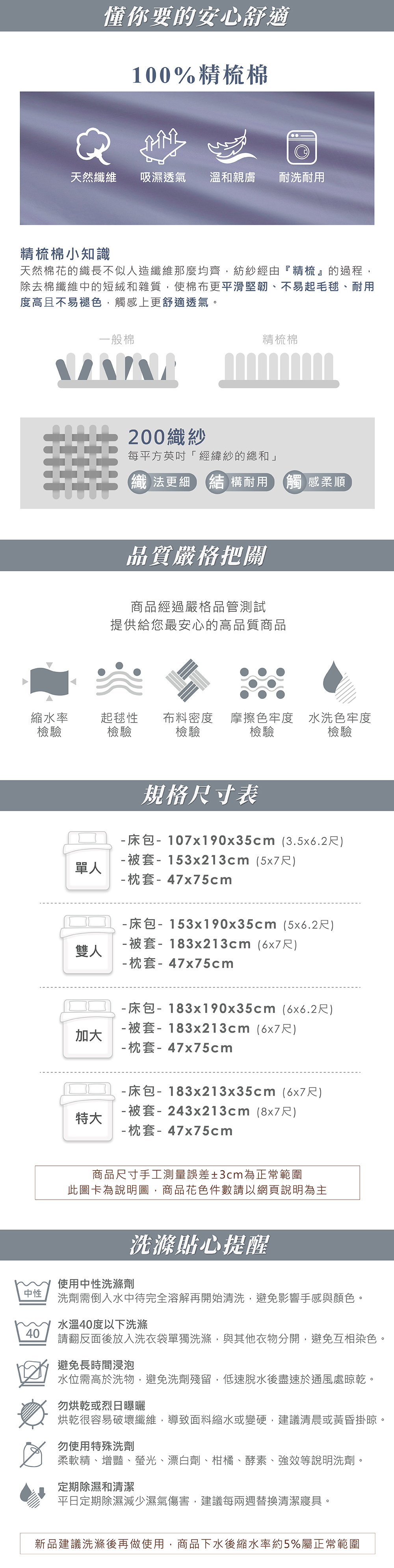 100%精梳純棉,溫和親膚