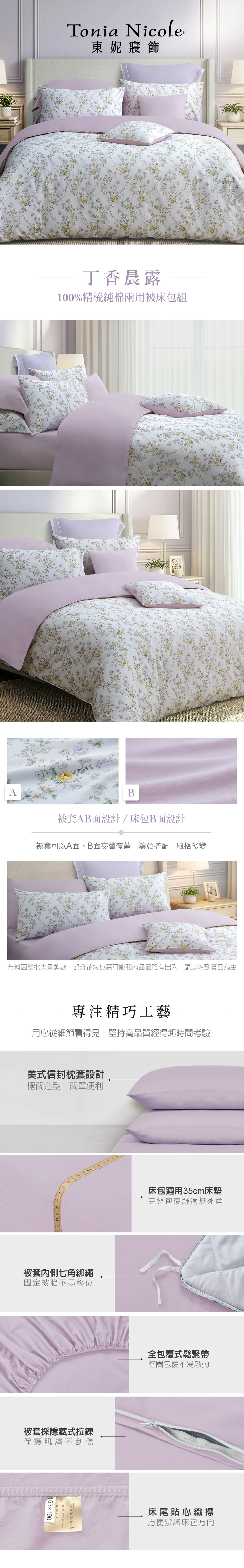 【Tonia Nicole 東妮寢飾】丁香晨露100%精梳棉兩用被床包組(雙人)