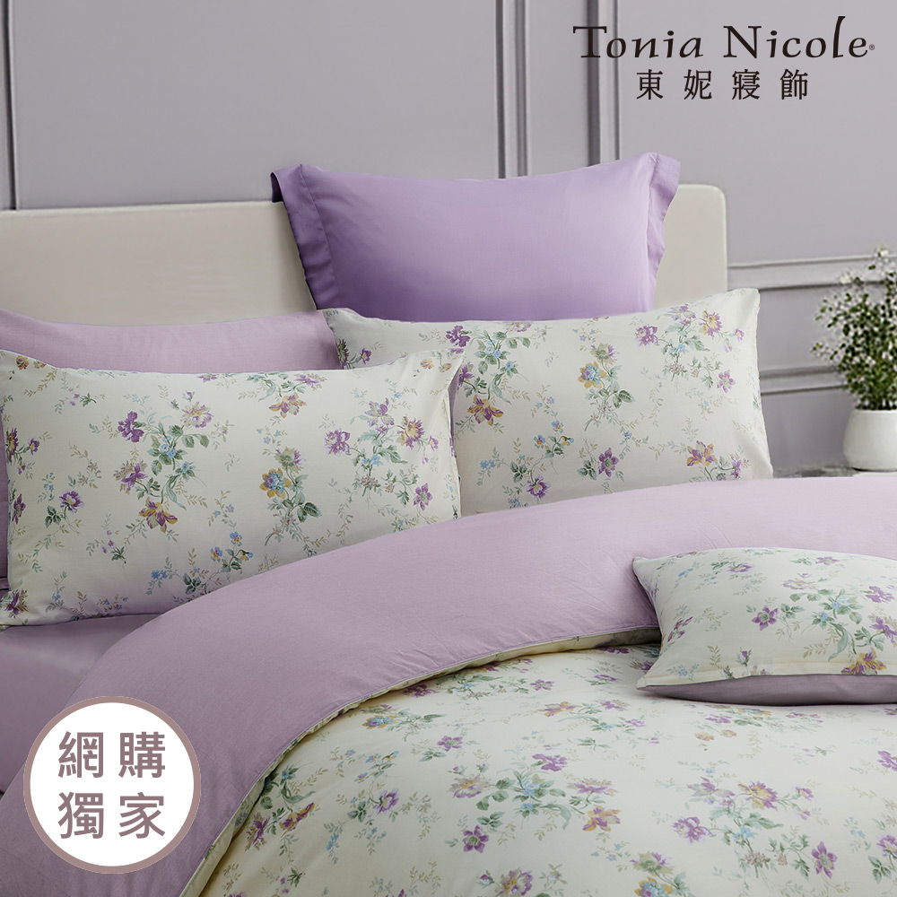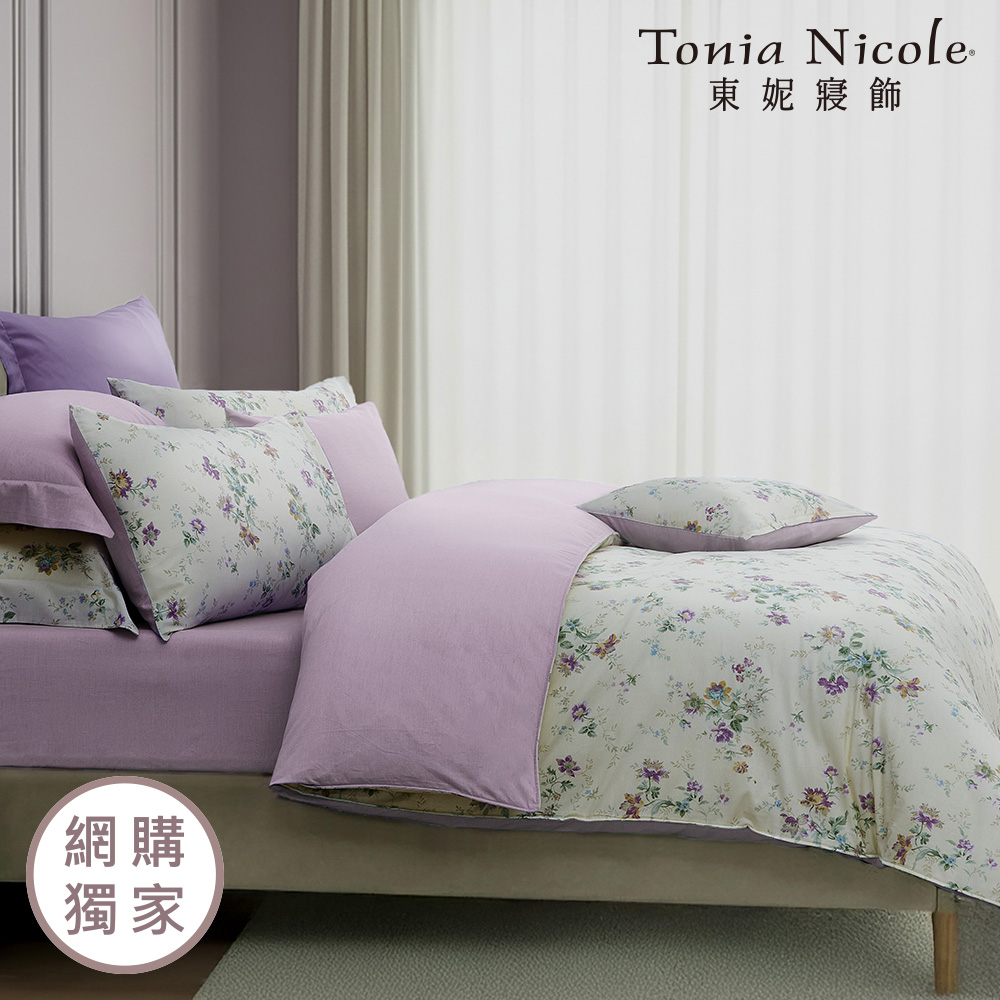 【Tonia Nicole 東妮寢飾】沐光紫苑100%精梳棉兩用被床包組(雙人)