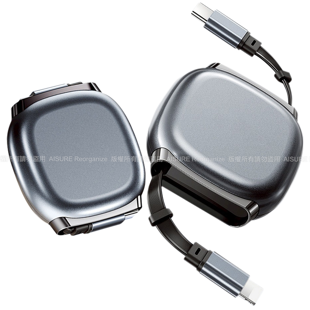 DA 雙向伸縮快充線 USB-C to Lightning 27W 磁吸收納-2個一組-星空黑