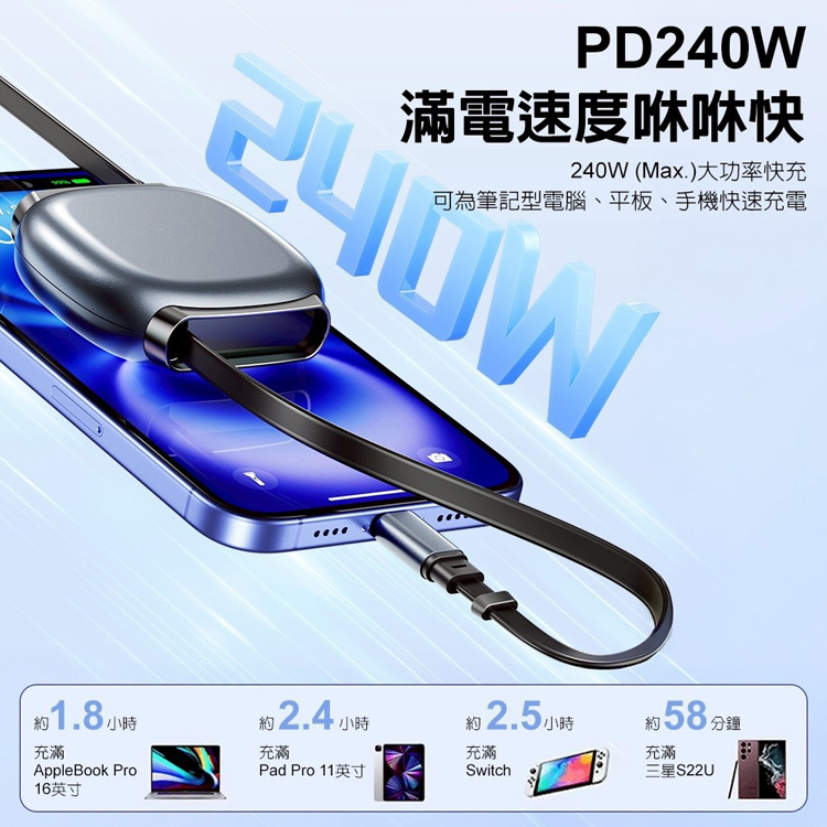 PD快充,手機、平板、筆電都能充,辦公室桌面不凌亂、車上用也剛剛好,