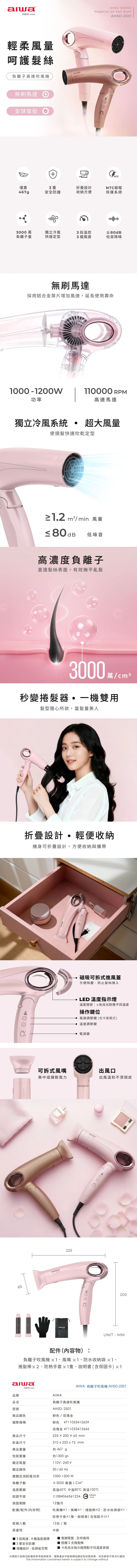 【粉寵購物節】AIWA愛華 高速負離子吹風機 AHSD-2501