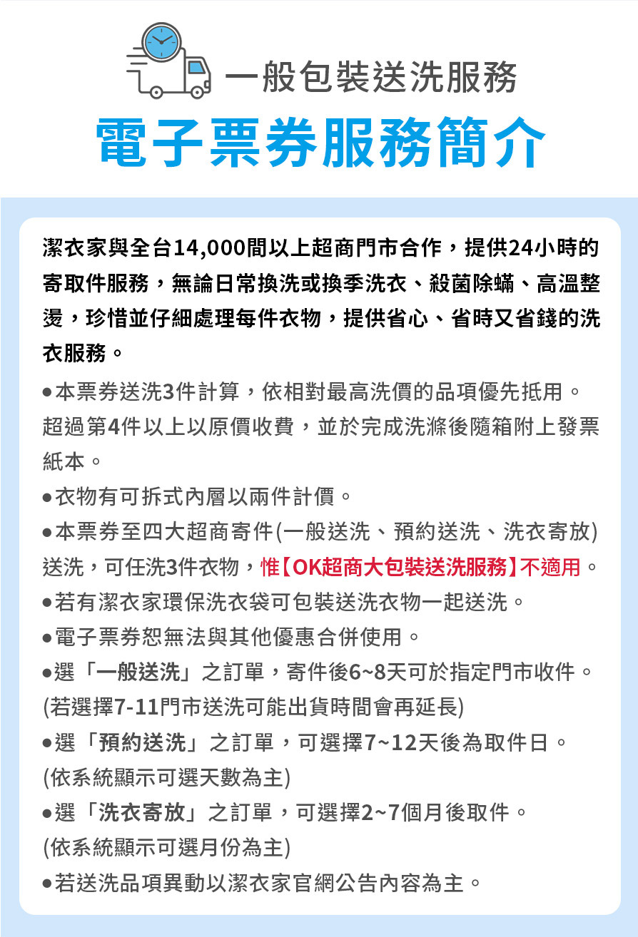 【潔衣家】超商送洗第一品牌_送洗3件券10張(乾洗首選)(26)