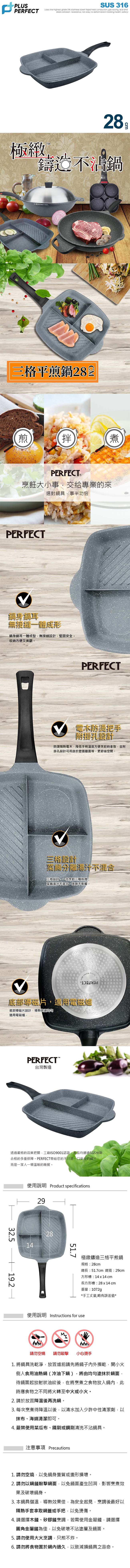 理想PERFECT 極緻鑄造三格平煎鍋 28cm無蓋 SJ-2550028 台灣製