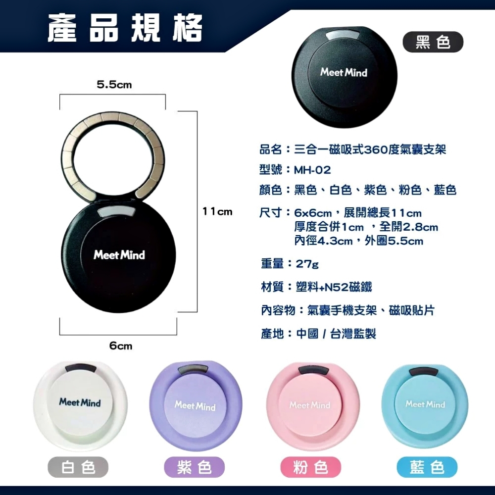Meet Mind 三合一磁吸式360度氣囊支架-白色