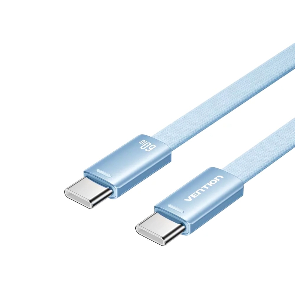 VENTION 威迅 TRZ系列 USB-C 2.0 to Type-C 60W PD 3A扁線傳輸充電線-鋁合金款-1M-藍色