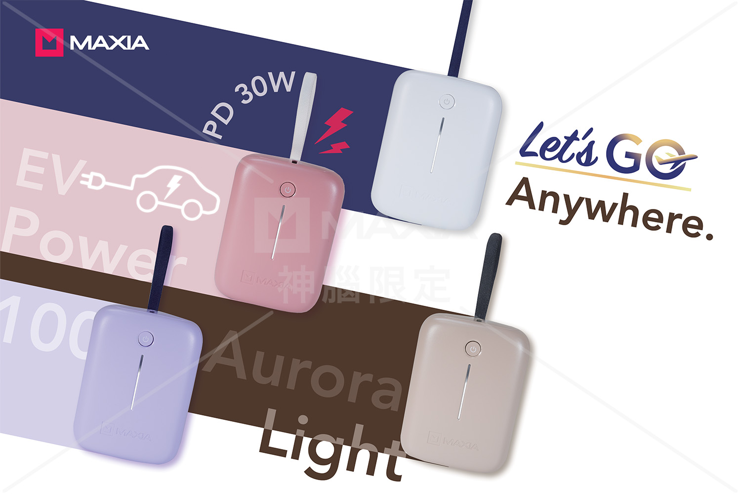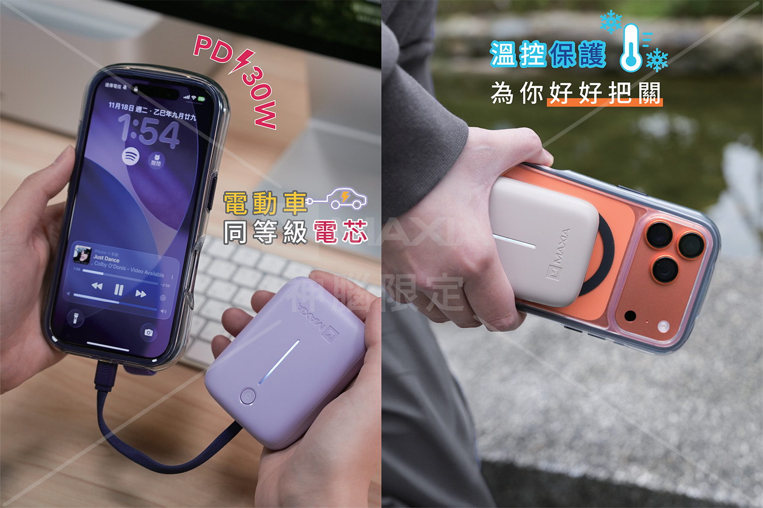 【MAXIA】快充動力行動電源10000-丁香紫(30W快充/10000mAh/自帶線/Wh標示)