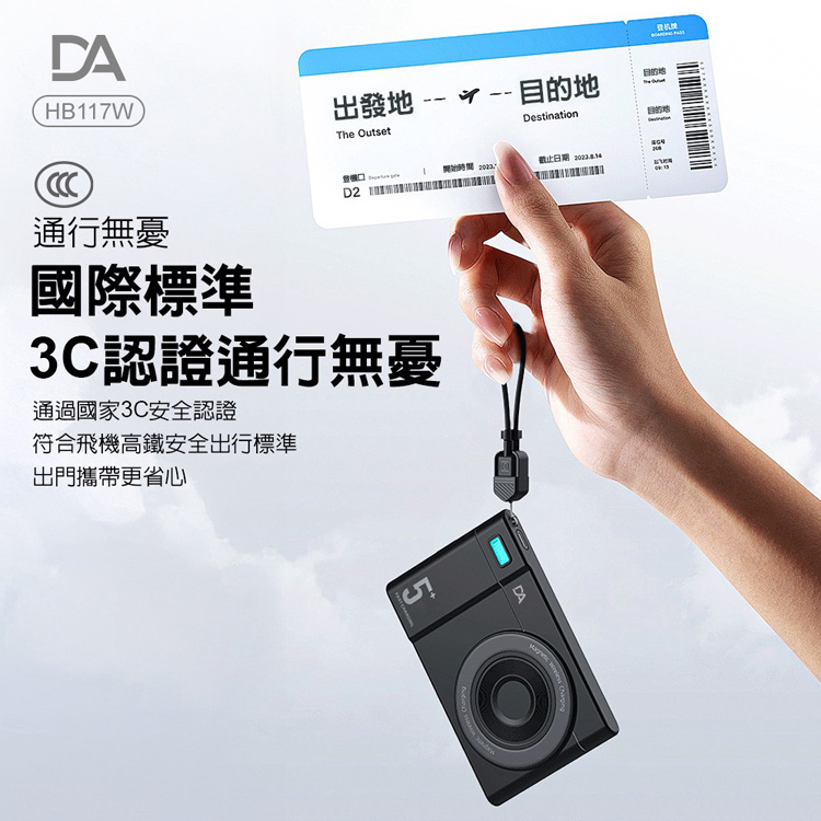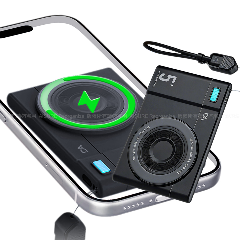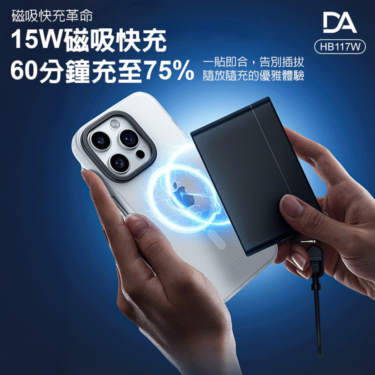 DA-HB117W 相機小卡充5000mAh 3合1 磁吸行動電源360旋轉支架15W快充-黑