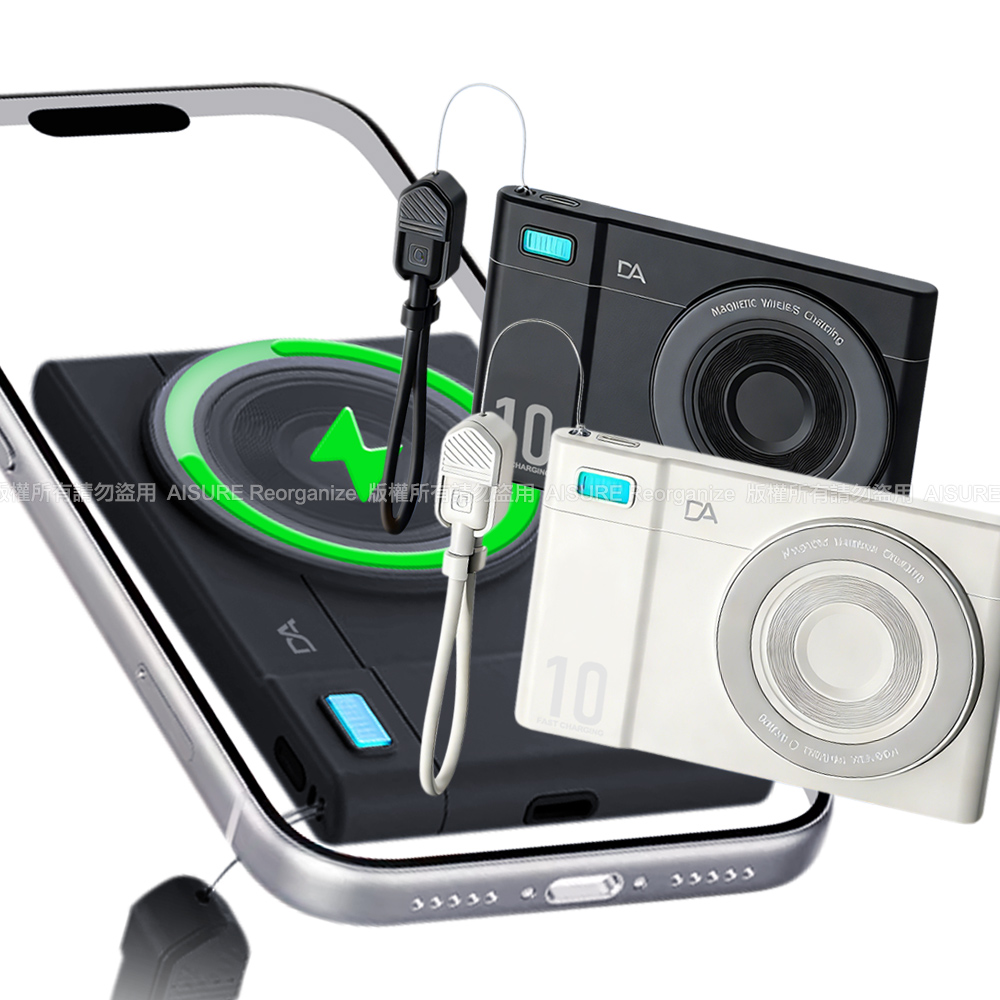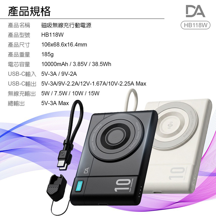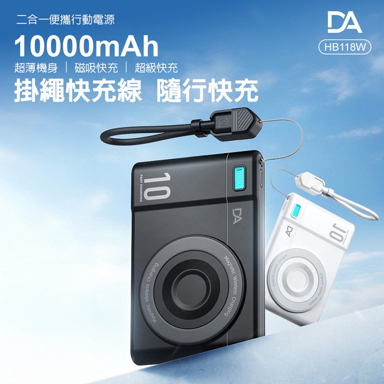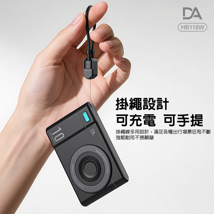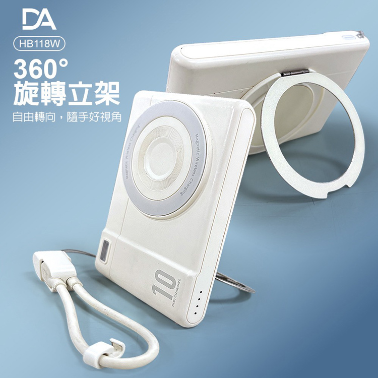 DA-HB118W 相機小卡充10000mAh 3合1 磁吸行動電源360旋轉支架15W快充-黑