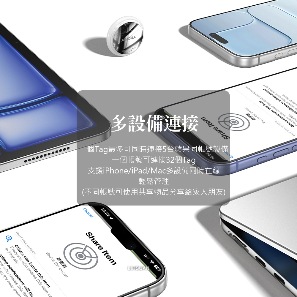 一個Tag最多可同時連接5台蘋果同帳號設備