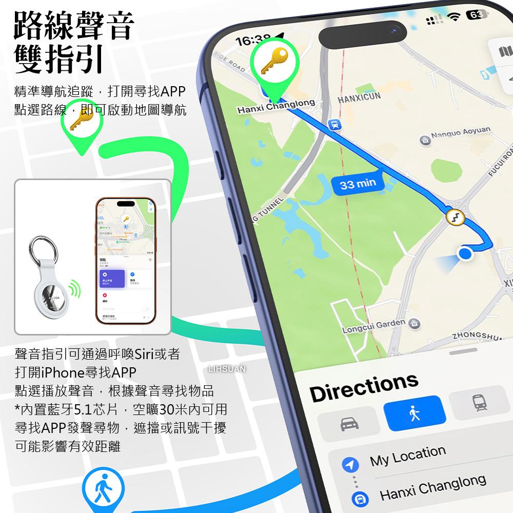 *內置藍牙5.1芯片,空曠30米內可用,尋找APP發聲尋物,遮擋或訊號干擾可能影響有效距離