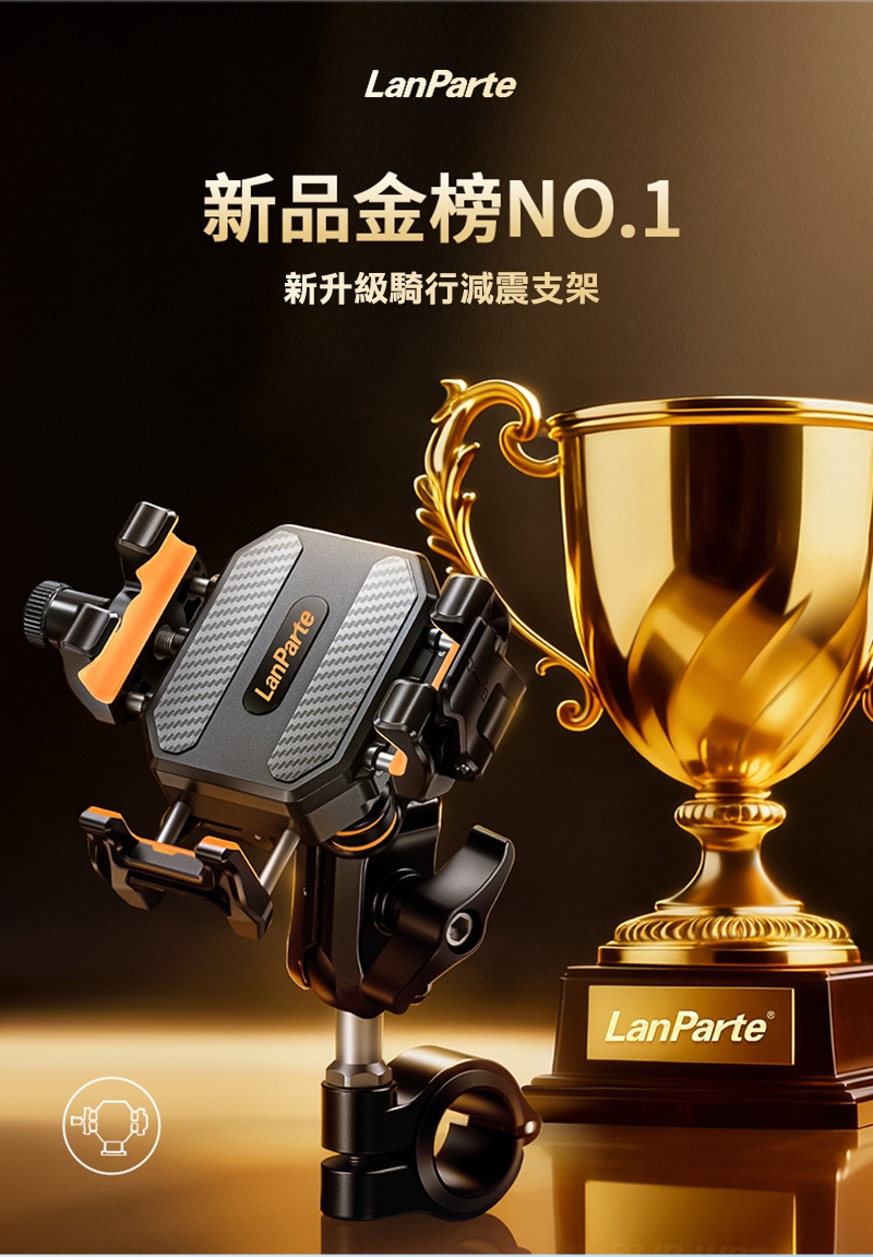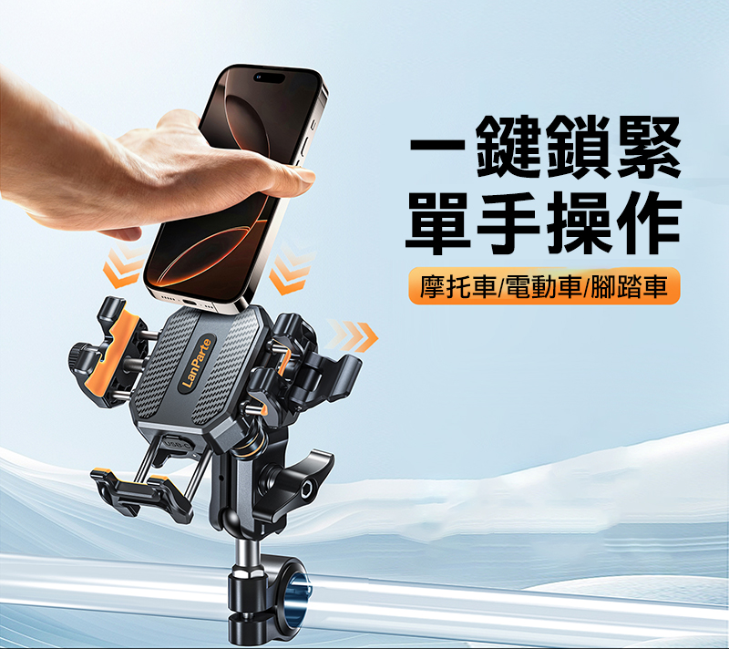 LanParte 迷你減震機車快扣手機支架(無線充電版)(後視鏡款)