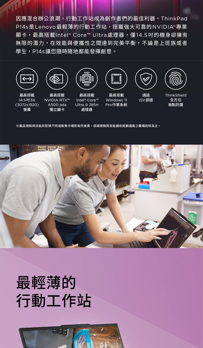 《Lenovo 聯想》 ThinkPad P14s Gen 6(14.5吋WUXGA/U7 255H/32G+16G/1TB/RTX PRO 500/特仕版)