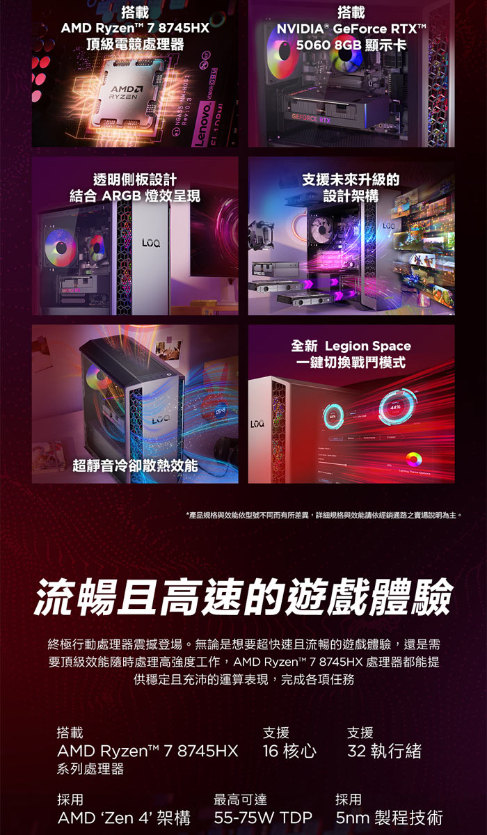 Lenovo 聯想 LOQ Tower 91DF0076TW(Ryzen 7 8745HX/16G+16G/512G PCIe SSD/Win11/特仕版)