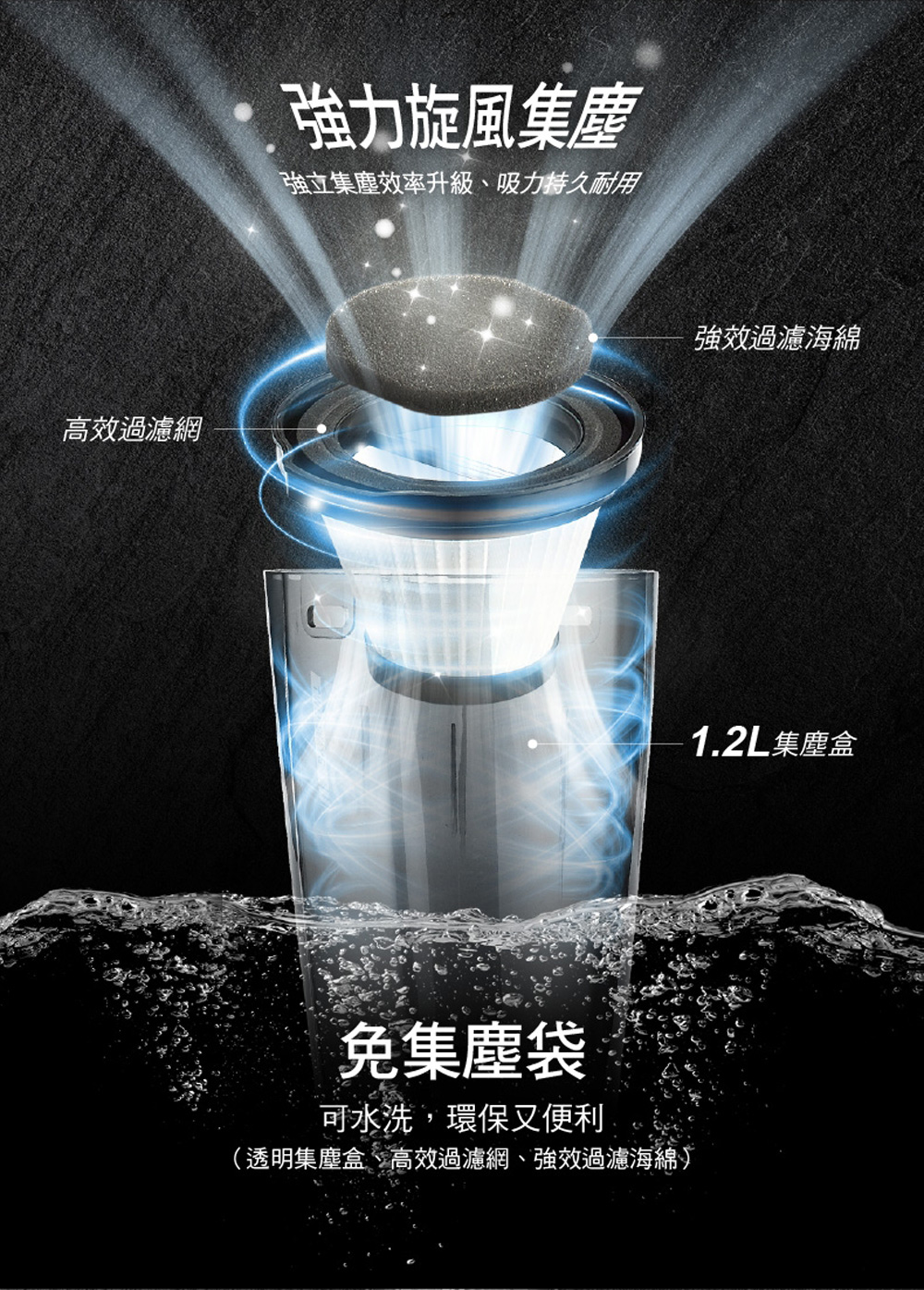 *強力旋風集塵,吸力持久耐用