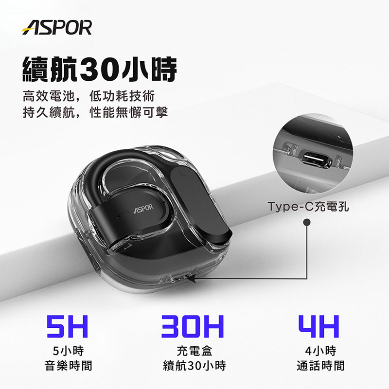 ASPOR 開放式耳掛藍牙耳機 A627 (雪白色)