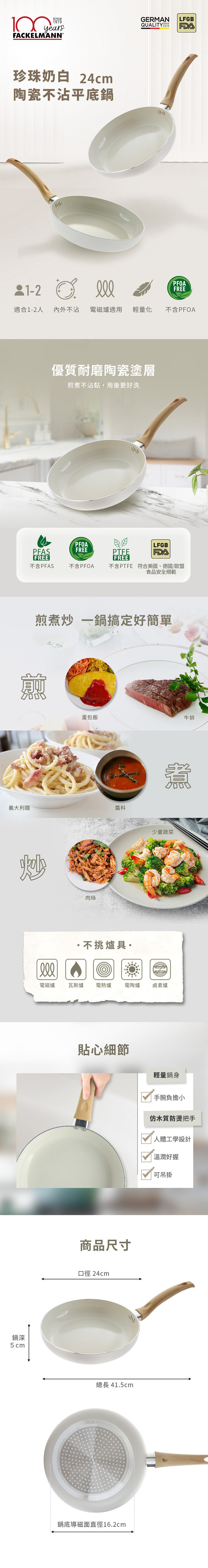 德國Fackelmann 珍珠奶白陶瓷不沾平底鍋(24cm) (適用電磁爐)