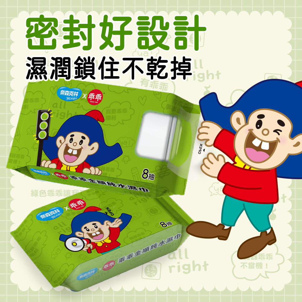 奈森克林X乖乖 迷你包純水濕巾8抽6入/袋 (綠-金順) x 6袋