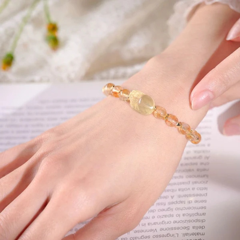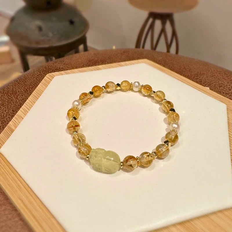 『貔貅招財』手鍊融合黃水晶貔貅、黃塔晶與天然珍珠,亮麗的金黃色光彩帶來聚財納寶、事業有成的能量守護。