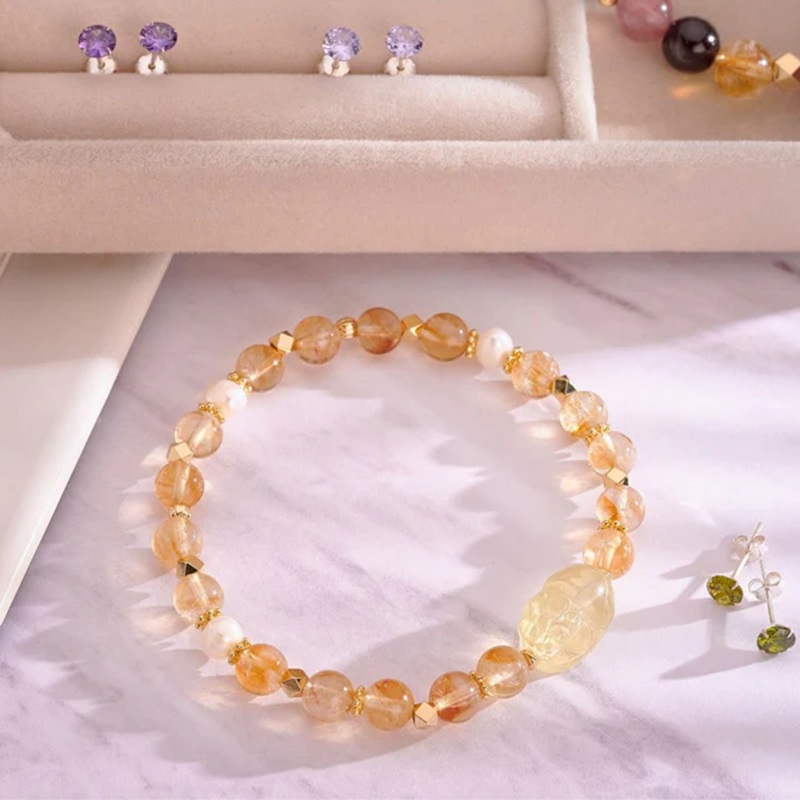 黃塔晶激發財富潛能,天然珍珠則帶來內心的平靜與和諧,幫助舒緩生活壓力。