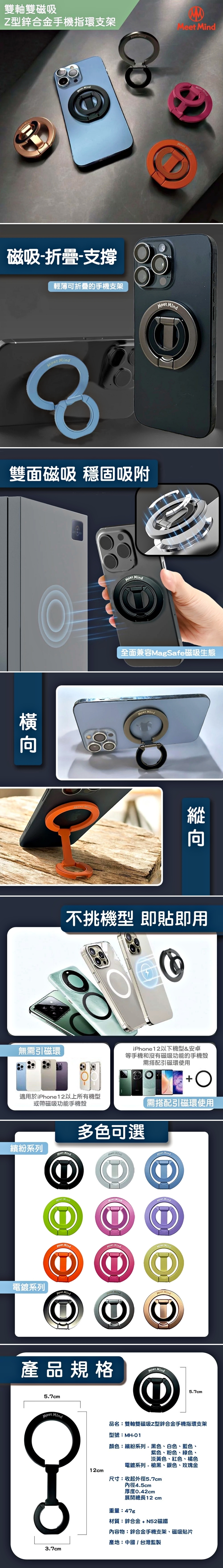 Meet Mind 雙軸雙磁吸Z型鋅合金手機指環支架-繽紛-淡黃色