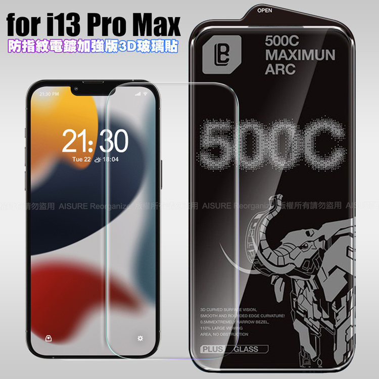 LB iPhone 13 Pro Max 防指紋電鍍加強版3D曲面玻璃貼