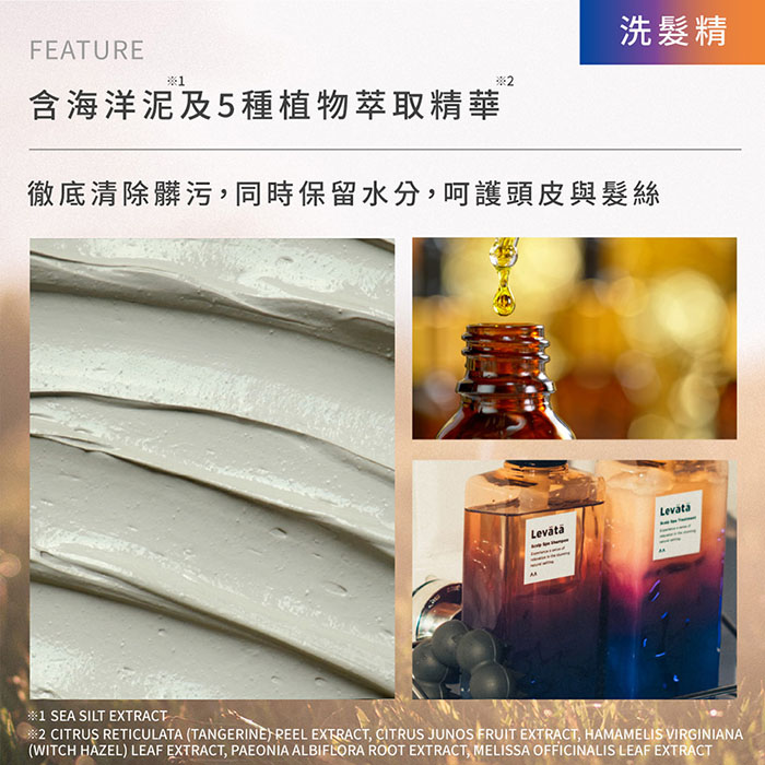 含海洋泥及5種植物萃取精華,呵護頭皮與髮絲