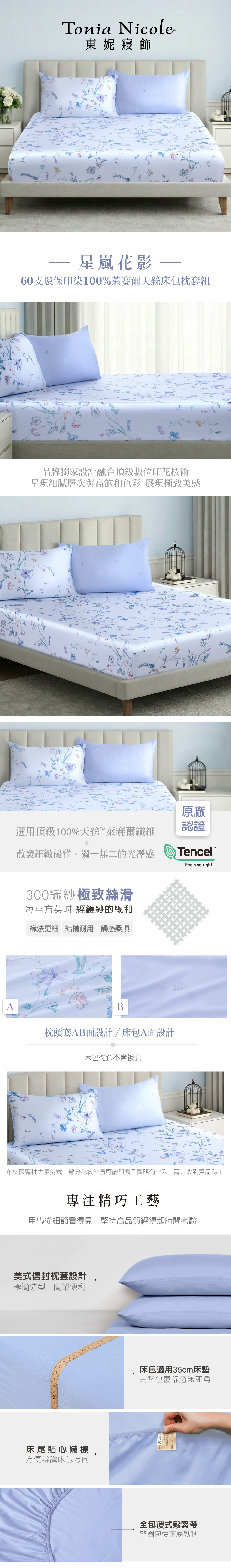 【Tonia Nicole 東妮寢飾】星嵐花影60支環保印染100%萊賽爾天絲床包枕套組(雙人)