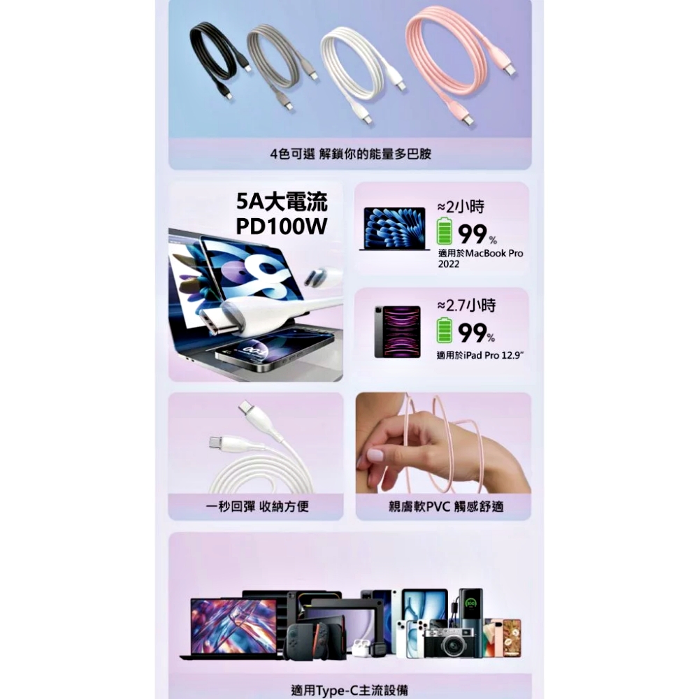 PD100W,疾速充電,適配多配備