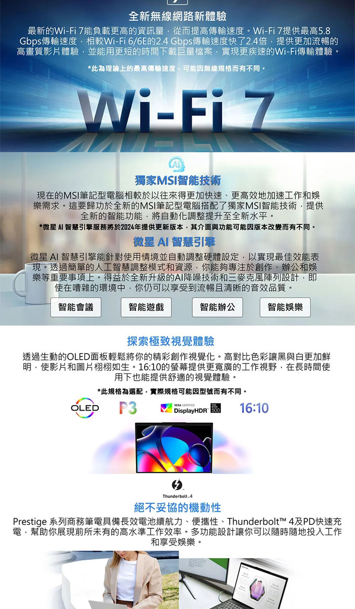 《MSI 微星》Prestige 13 AI Evo A1MG-095TW(13吋FHD+/Ultra 7 165H/32G/2TB SSD/特仕版)