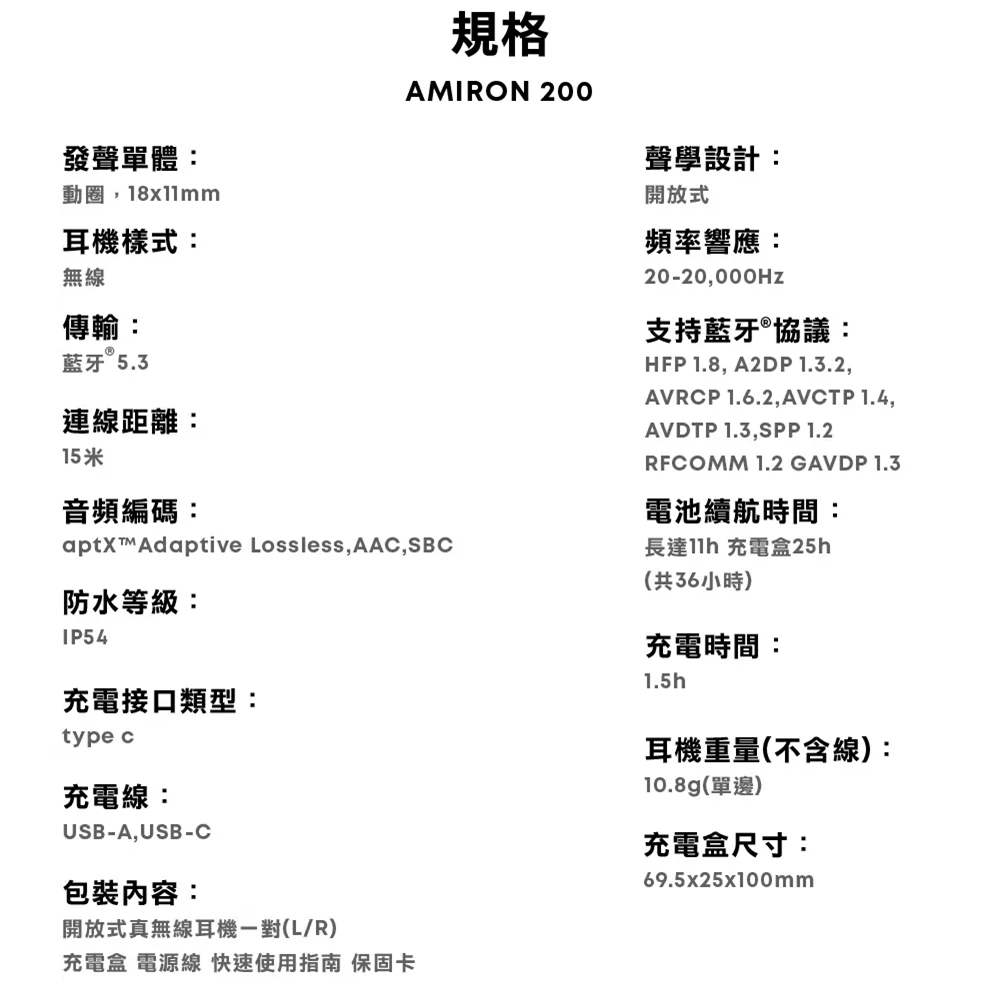 【beyerdynamic拜雅】AMIRON 200 開放式真無線藍牙耳機 36H超長續航 IP54防護 全新APP