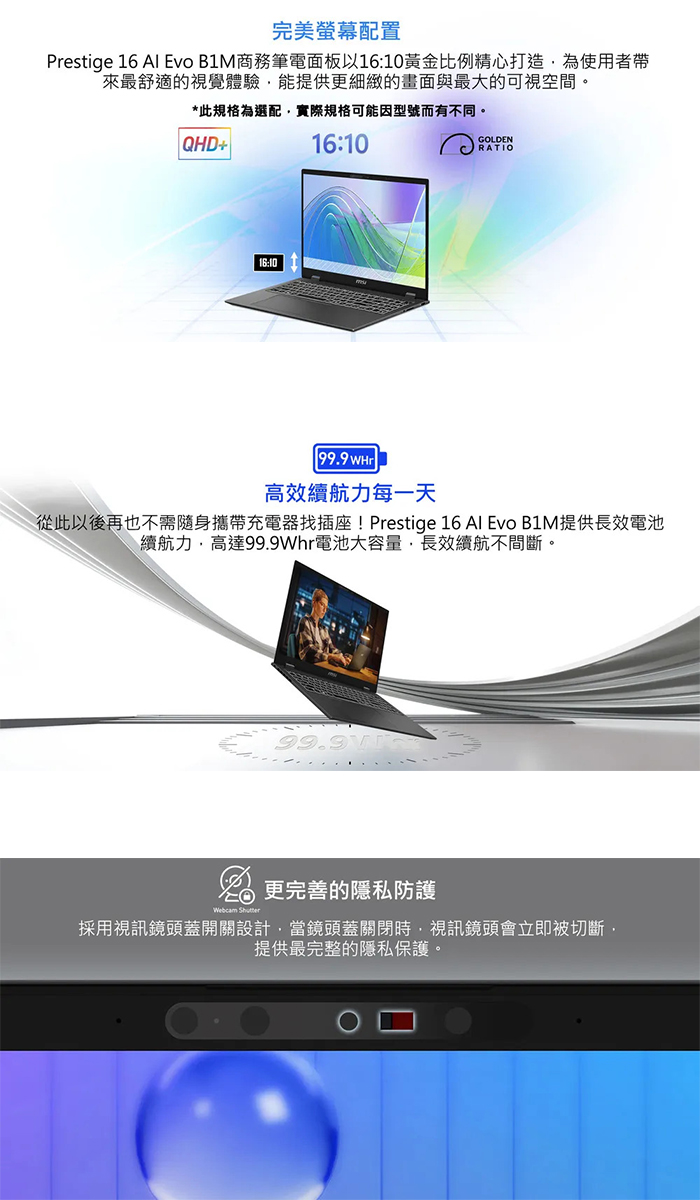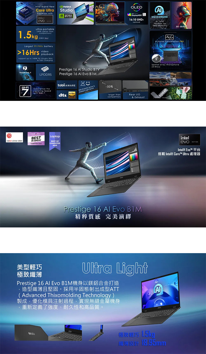 《MSI 微星》Prestige 16 AI Evo B1MG-061TW(16吋FHD+/U7 165H/32G/1TB+4TB SSD/特仕版)
